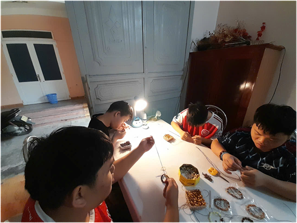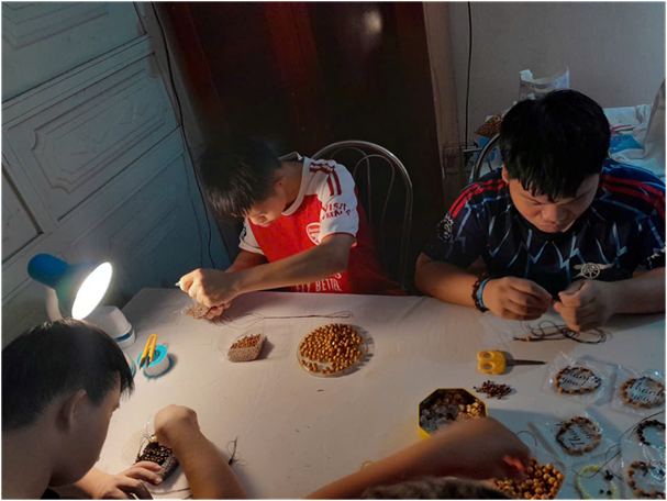 Thoạt nhìn, một chuỗi tràng hạt có thể trông đơn giản. Nhưng để hoàn thành được một sản phẩm hoàn chỉnh, các em phải trải qua nhiều công đoạn đòi hỏi sự tập trung và khéo léo. Mỗi hạt, mỗi sợi dây đều được lựa chọn cẩn thận, không chỉ để đảm bảo tính thẩm mỹ mà còn thể hiện sự trân trọng đối với một vật phẩm thiêng liêng.